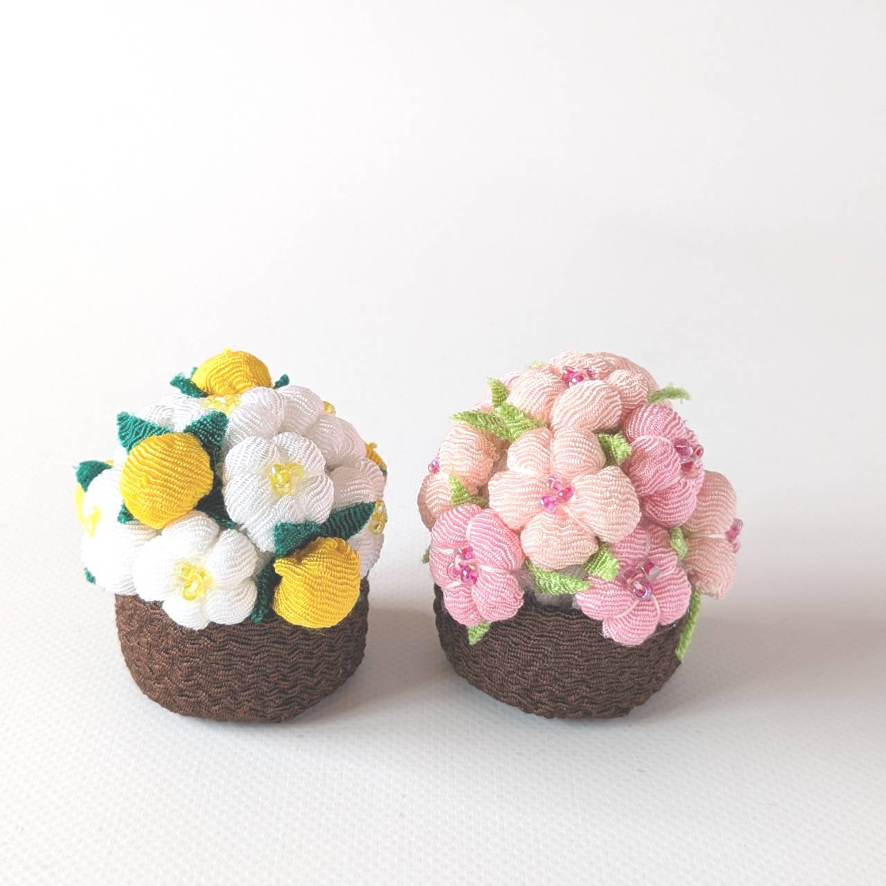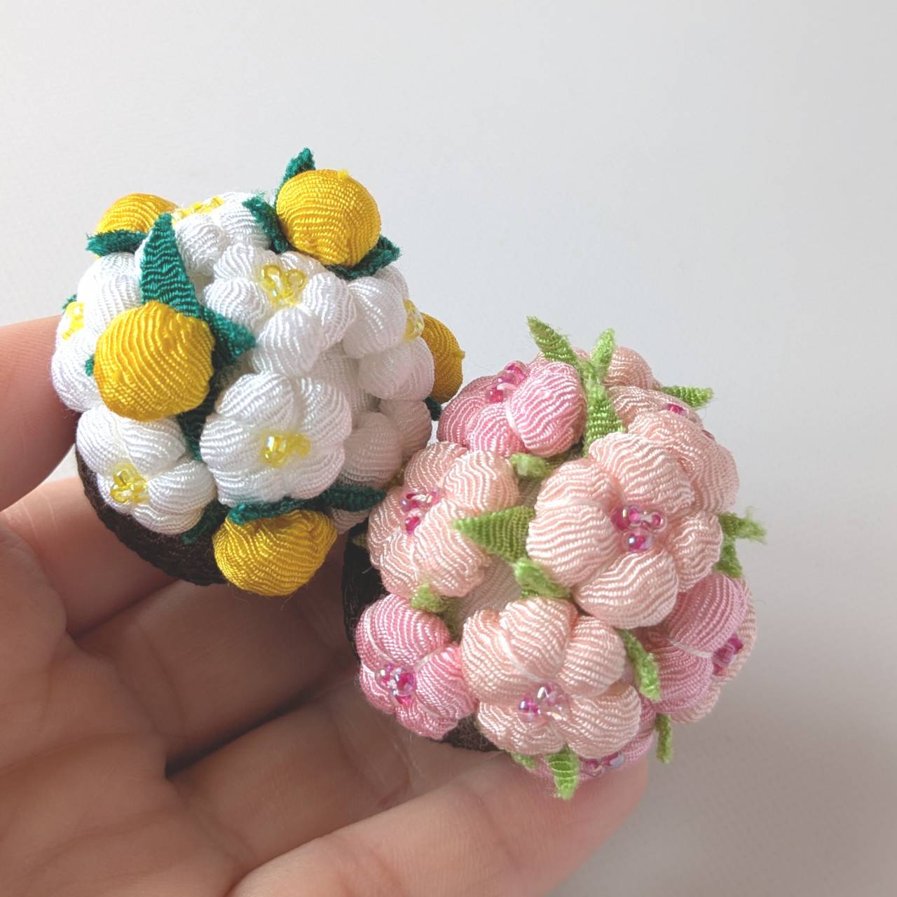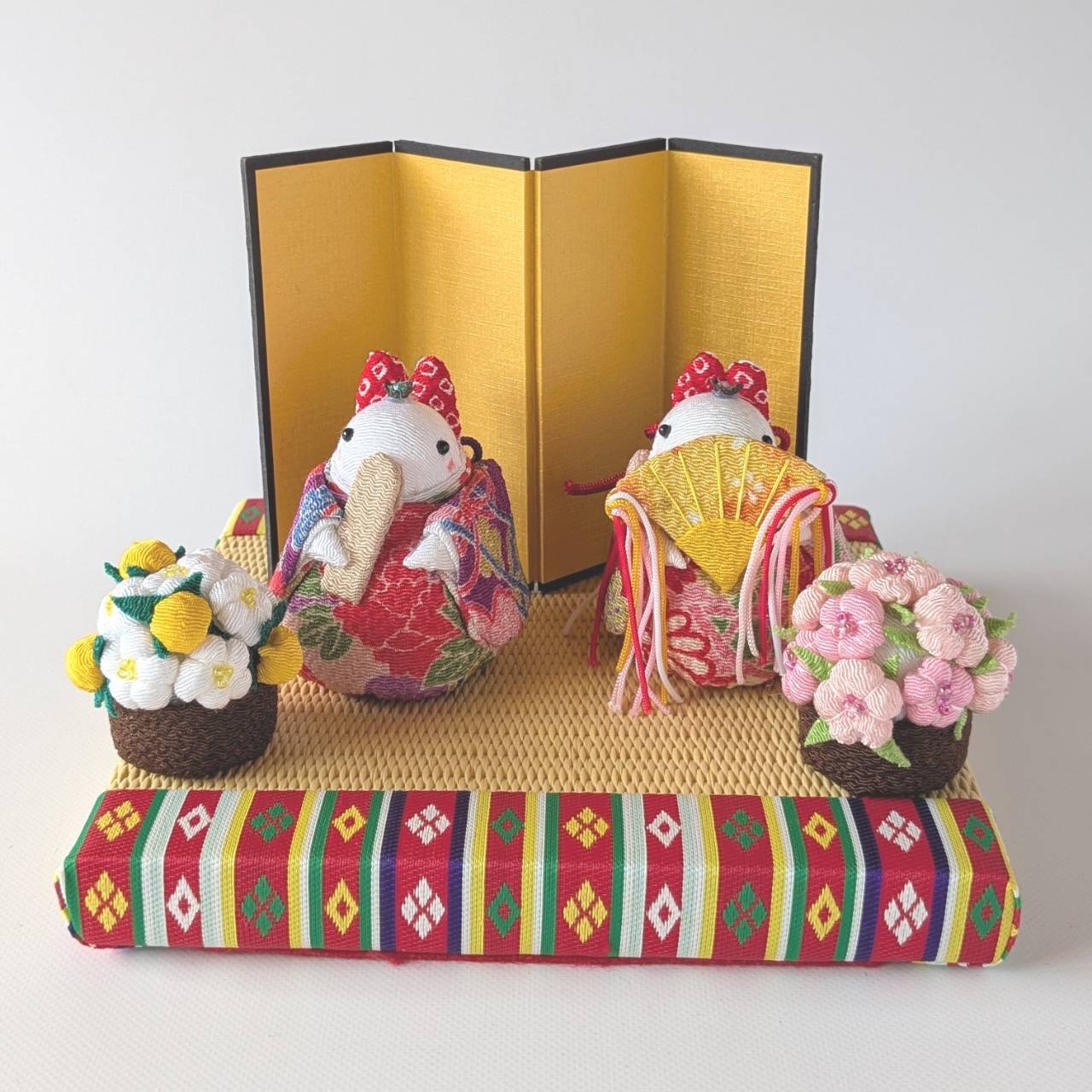 ちりめんの桜と橘の飾りです。