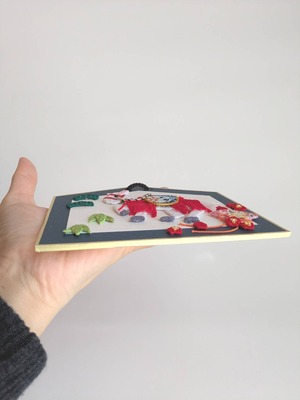 縦約13cm×横幅約16cm の絵馬型の台紙に押絵を貼っています。