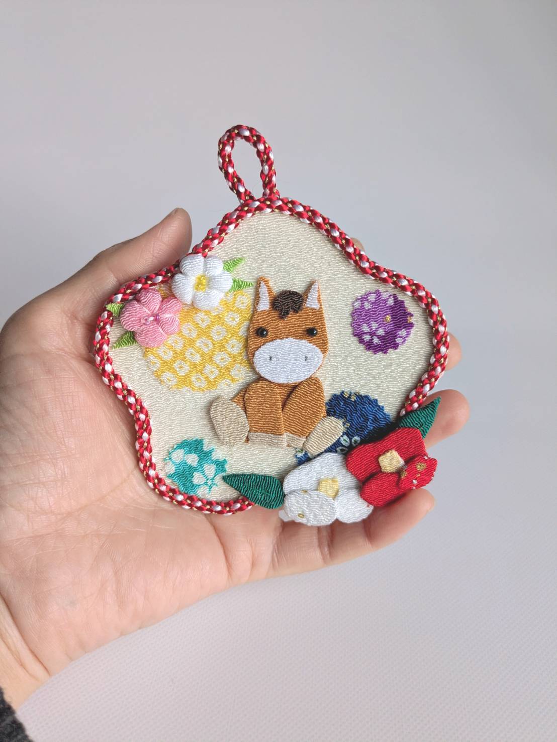 こちらのページでは 【干支午(うま・馬) 梅型壁掛け押絵「おすわり馬」】をご紹介します。