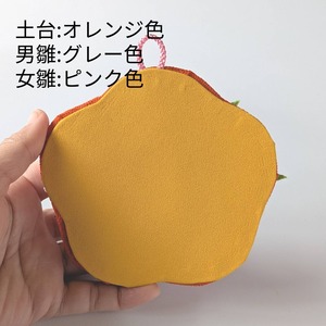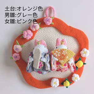 「お雛様の壁掛け 梅型 (土台:オレンジ色 男雛:グレー色 女雛:ピンク色)」