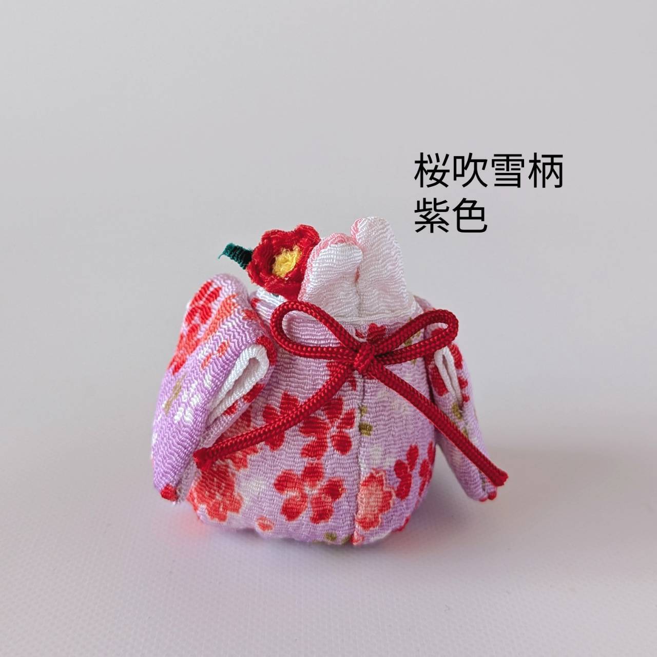 「椿うさちゃん 椿の花飾り ちりめん生地 桜吹雪柄(紫色)」
