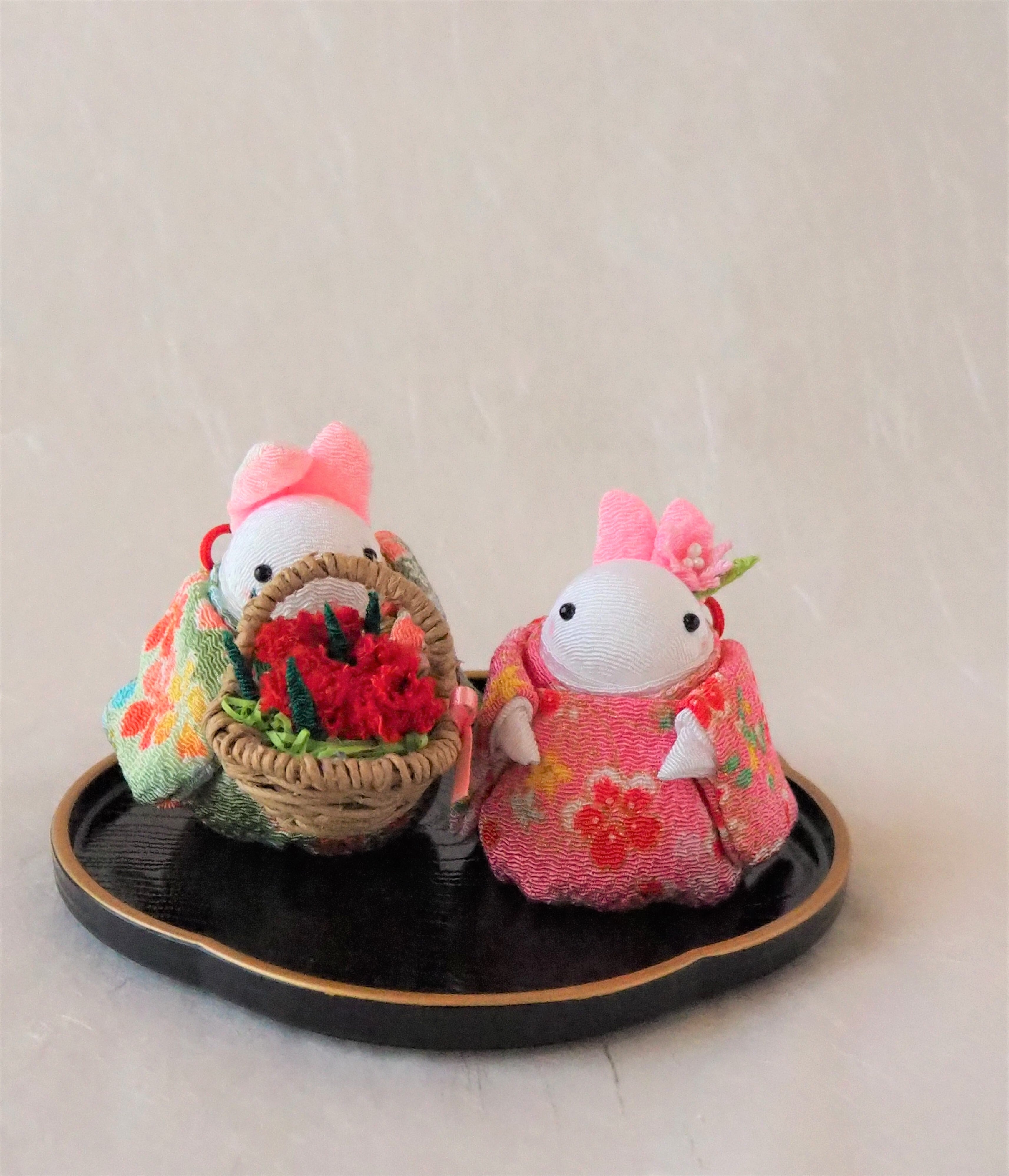 ちりめんの商品といっしょに飾る際は水気や湿気、直射日光にご注意ください。