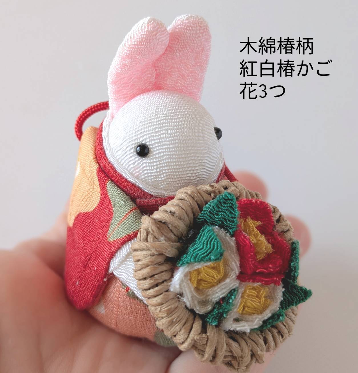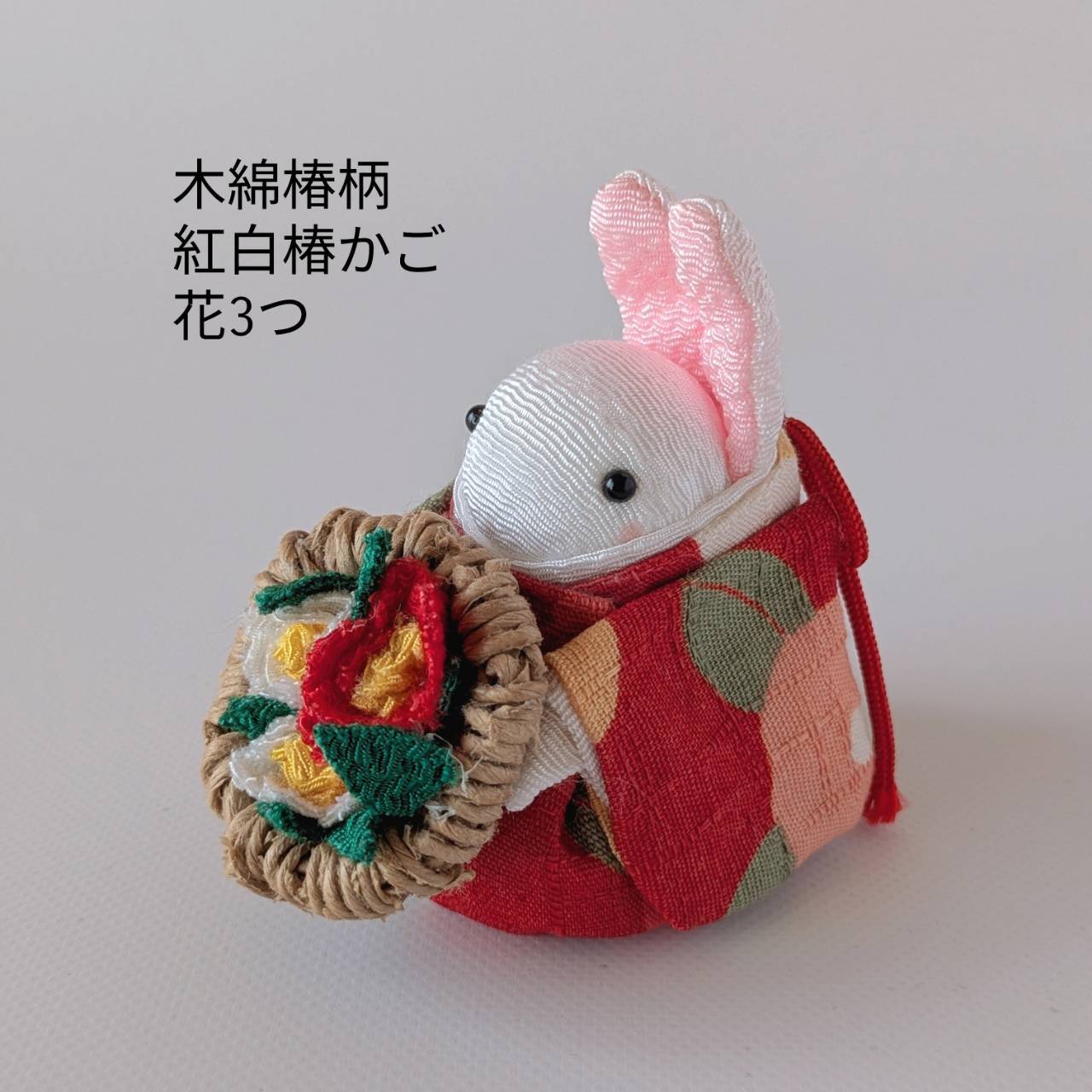 他にも「椿うさちゃん 紅白椿かご ちりめん生地」「うさちゃん 赤椿かご ちりめん生地」もございます。