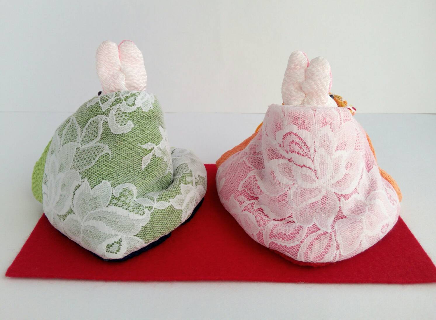 ・十二単うさちゃん 花柄レース(男雛:うぐいす色、女雛:桃色)