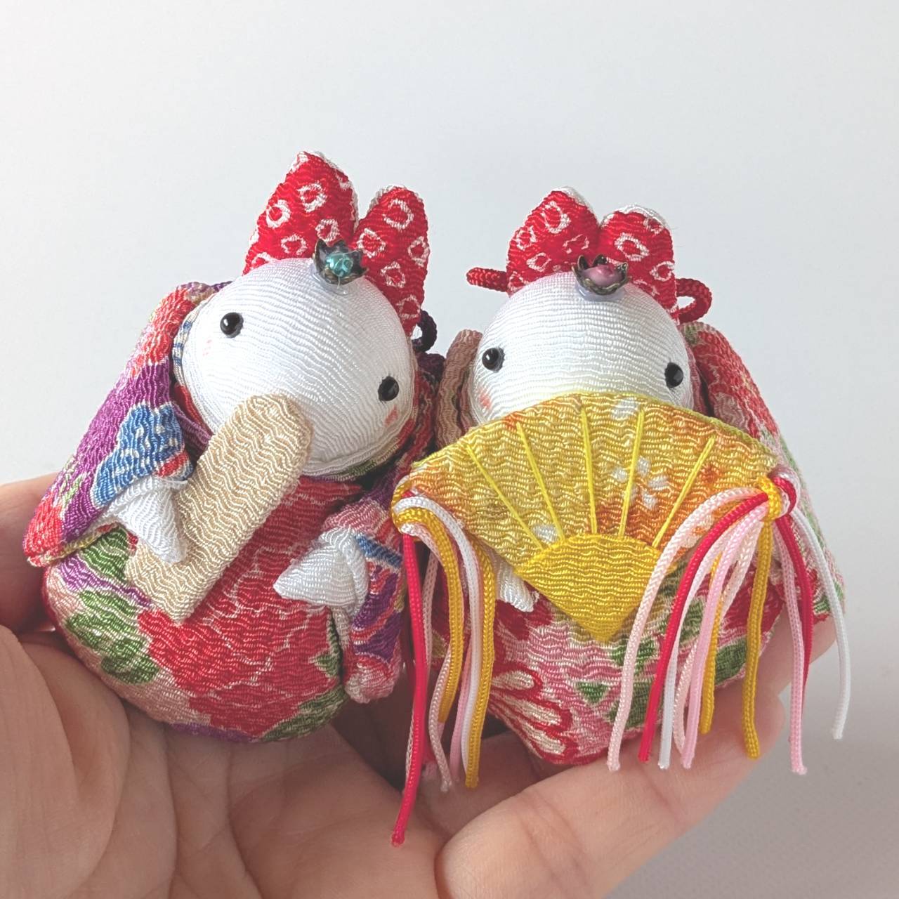 昔から縁起のよいとされる絵柄が描かれたちりめんを使っていています。