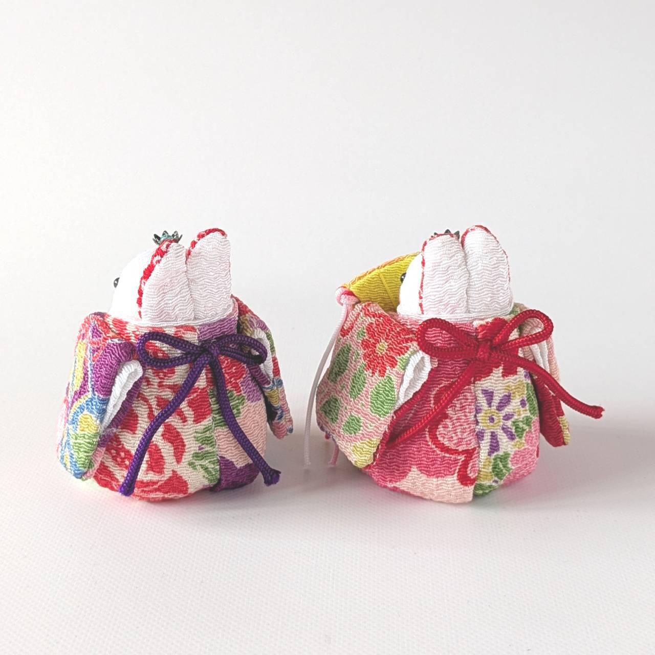 【おひなさまうさちゃん】雲取り文様に吉祥花柄(男雛:紫色 女雛:ピンク色)