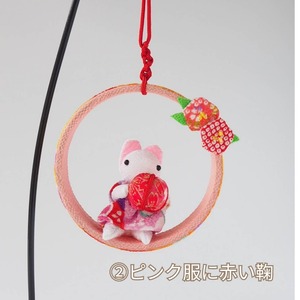 こちらの壁掛け飾りは「赤い服にピンクの鞠」と「ピンク服に赤い鞠」の2種類ございます。