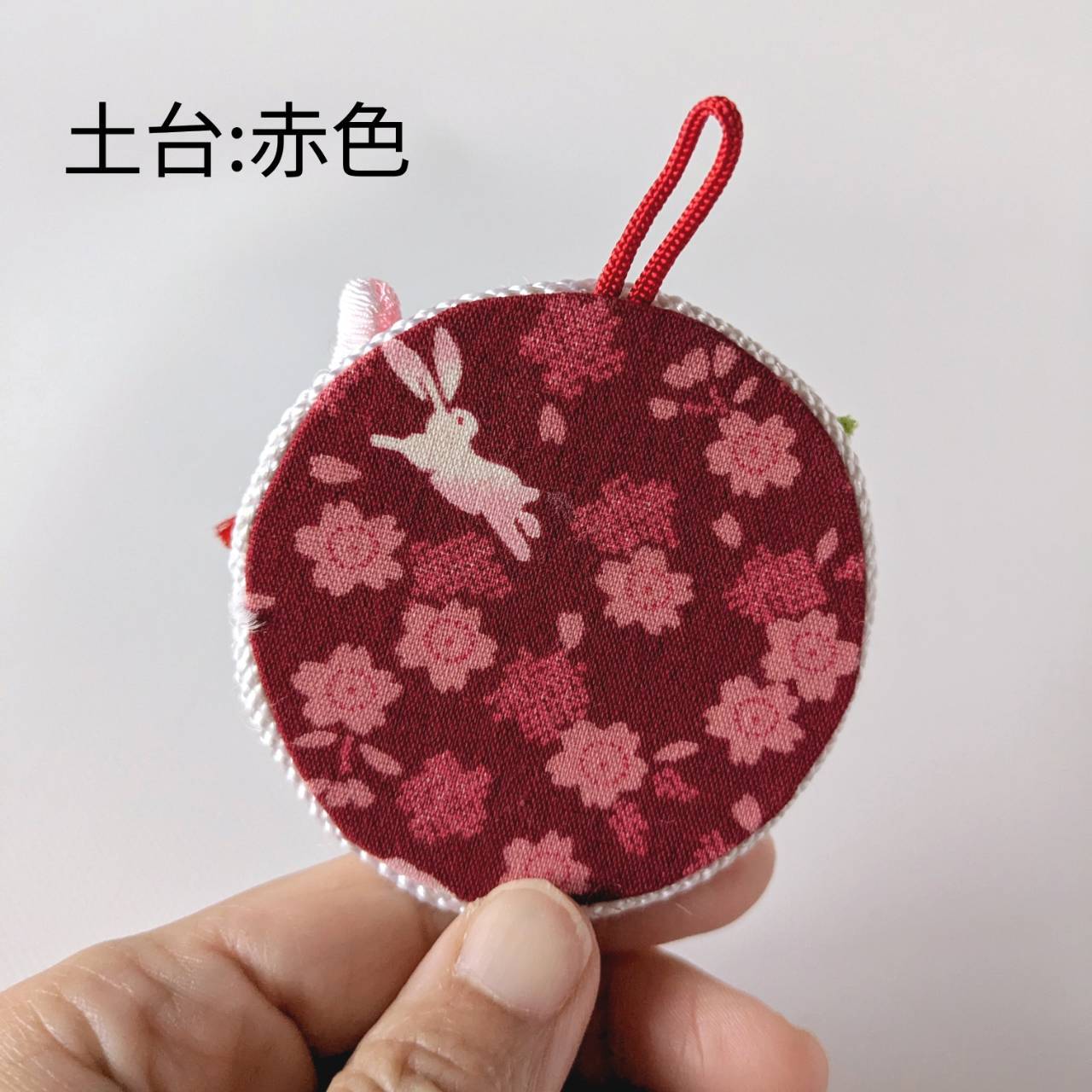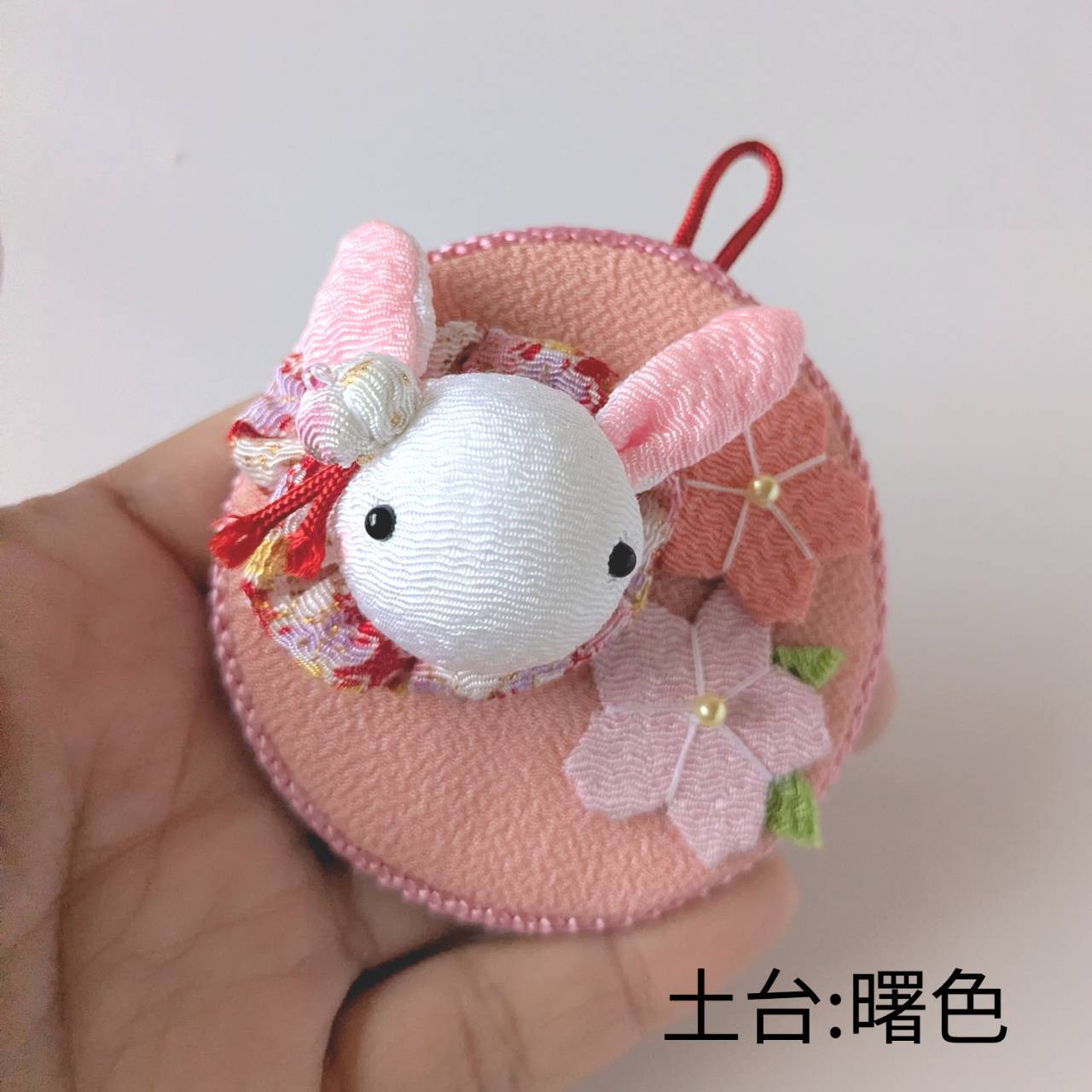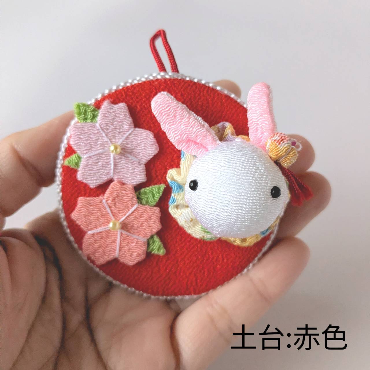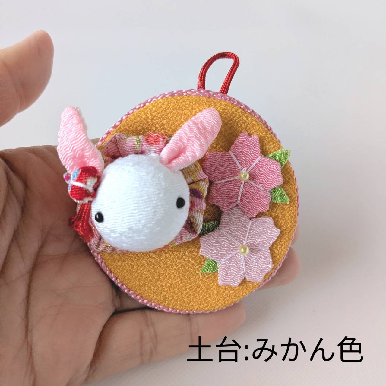 うさぎ:頭に赤色の髪飾りと顔周りにピンク地のちりめんの飾り