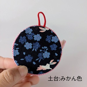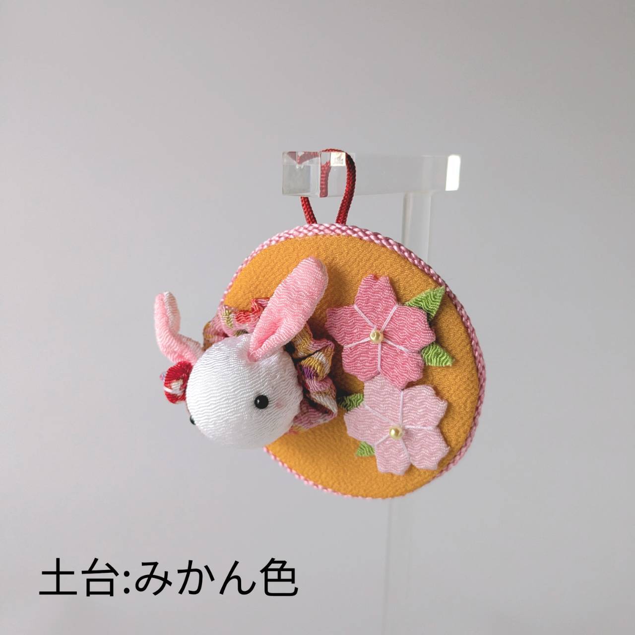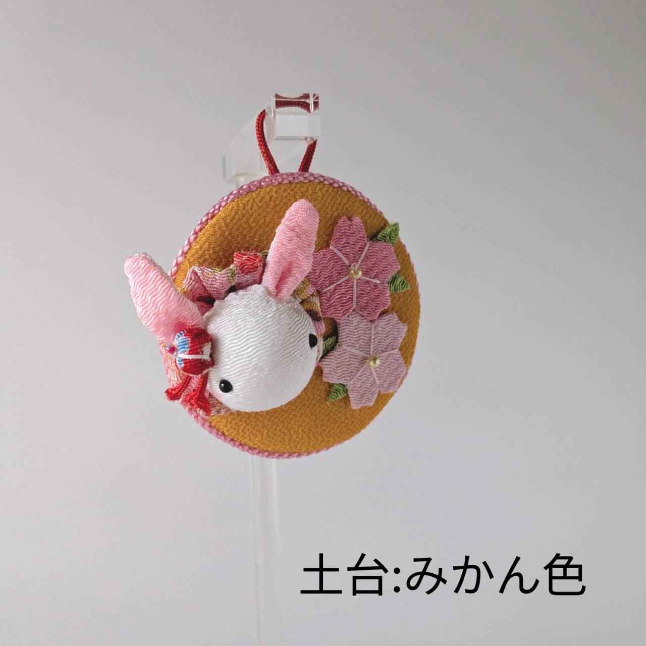 丸い土台に桜の押絵とうさぎのお顔をあしらった壁掛け飾りです。