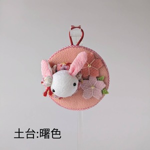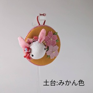 「うさぎと桜の丸い壁掛け飾り (土台:曙色)」