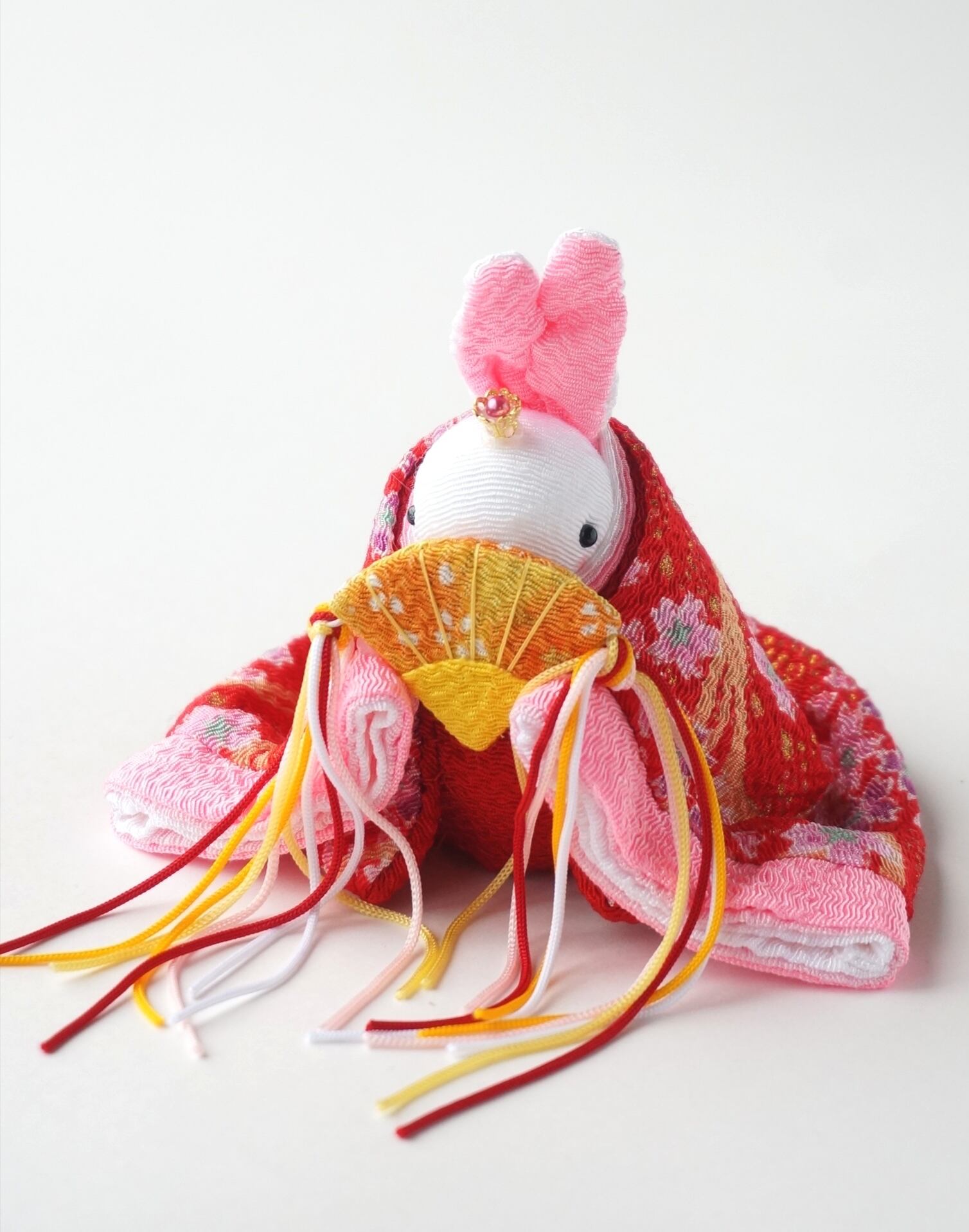 十二単うさちゃん 金彩流水に桜柄(男雛:紺色 女雛:赤色)
